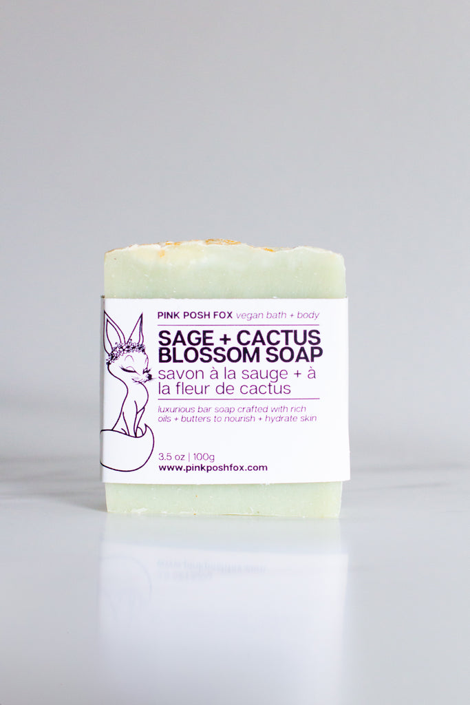 Our soaps are handcrafted in our Montreal studio with only the finest fair trade, organic, vegan and palm-free ingredients. Each 3.5oz bar is long lasting, nourishing and produces a cream like bubbly lather that leaves your skin feeling hydrated, moisturized and never dry or squeaky. Sensitive skin safe, can be used on the hands, face + body.